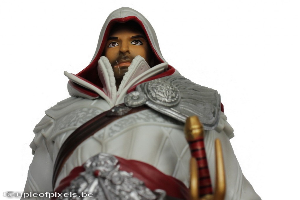 Disponible pour environ 30 euros, entre autres chez notre revendeur favori : La Cité des Nuages (qu’Aelya fait vivre quasi à elle toute seule), sa finition n’est pas exceptionnelle mais l’expression d’Ezio est la plus authentique des figurines disponibles à ce prix très bas.
