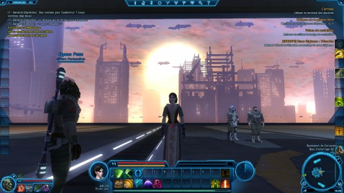 Le level-up est vraiment agréable : déjà, chaque classe à sa propre quête de départ que vous remplissez tout au long du leveling. Mais en plus de celle-ci, il y a toutes les autres quêtes à travers la galaxie qui sont tout aussi intéressantes, surtout qu’on peut y faire certains choix pas révolutionnaires mais sympathiques (vais-je remettre ce colis à son destinataire ou à untel qui m’a promis une récompense ?). Suivant vos actions, vous pourrez même recevoir des courriers de PNJs qui vous donneront des nouvelles (Encore merci de m’avoir aidée, maintenant je suis strip-teaseuse et ça me plait). Ce sont de petites choses, mais cela agrémente considérablement le jeu.