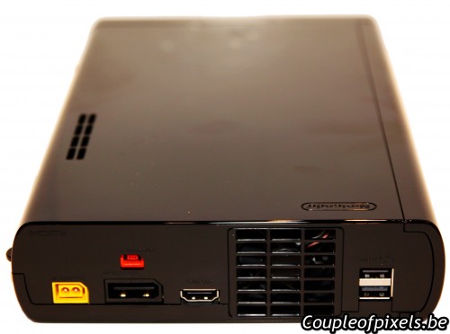 La face avant s’avère toujours aussi épurée avec très peu de boutons et les connecteurs sont tous camouflés derrière un petit clapet qui permet de découvrir un connecteur d’extension mémoire SD ainsi que deux ports USB.
