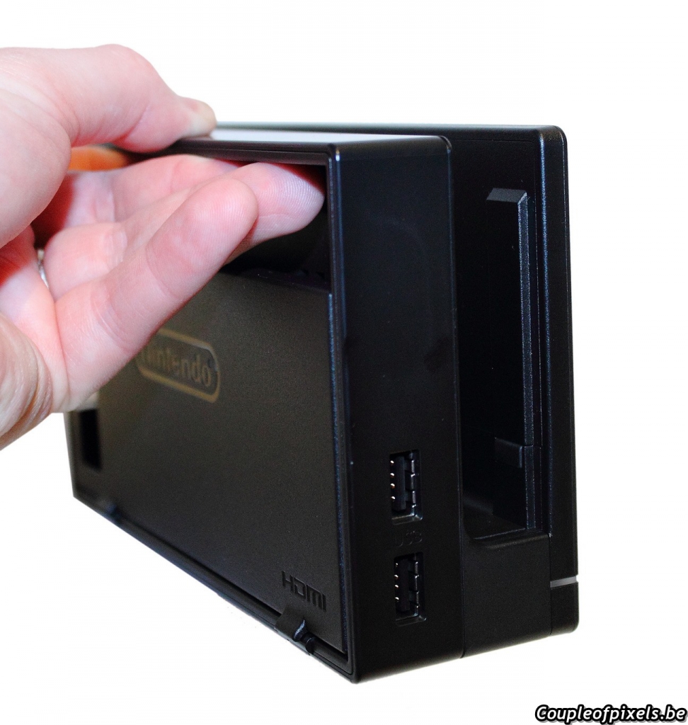 Peu de surprise, puisque cette station d’accueil (tout en plastique) est relativement basique et ne sert donc bien qu’à accueillir la tablette Switch pour la recharger et la connecter à la télévision.