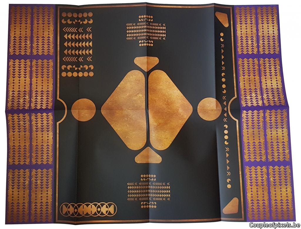 A l’intérieur, on découvre un poster, un livret, deux mini-cartes postales, un cercle holographique ainsi que 3 pions de l’armée cabale.