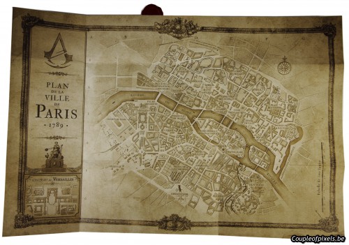 Le parchemin « garanti d’époque » s’avère être un plan de Paris. Une chouette initiative qui m’a un peu fait penser aux fameuses cartes des GTA.